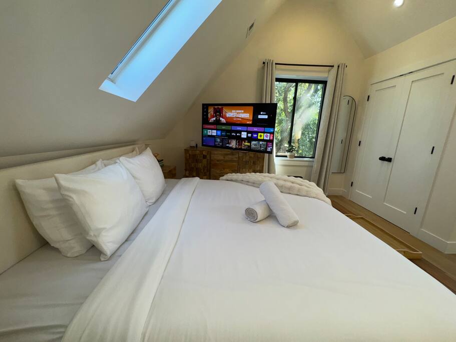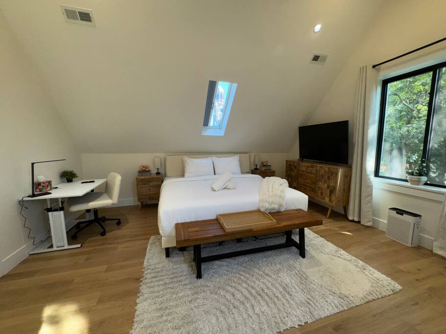 Experience top-floor luxury in this fully remodeled Avondale condo. Soak in the spa-style bath, bask in natural light from skylights, and relax with cozy furnishings, a king-size bed, and oversized smart TVs. Cook with ease in the sleek, fully stocked kitchen, or explore nearby Logan Square gems and Milwaukee Ave’s dining scene. Garage parking is included, and the Blue Line offers a direct ride to downtown or O’Hare—city access, minus the hassle.