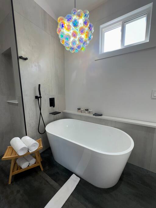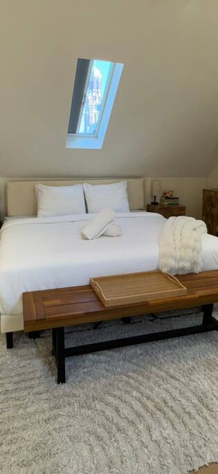 Welcome to your elevated escape in Chicago’s vibrant Avondale neighborhood—literally and figuratively. Nestled on the top floor of a boutique 3-unit building, this fully remodeled condo blends upscale comfort with modern flair, perfect for travelers who appreciate the finer things (and maybe a little spa time). Start your mornings in the spa-style bathroom, where a freestanding soaking tub invites long, leisurely soaks and an open shower with massage jets offers the perfect start—or end—to your day. The rest of the space is just as pampering: gleaming hardwood floors run throughout, and sunlight pours in from skylights and oversized windows, creating a warm, airy glow. Lounge in the cozy living room with a 65" smart TV, or retreat to the bedroom for a movie night in bed with a 55" screen and a plush king-size bed that practically guarantees restful sleep. The fully stocked kitchen features sleek finishes, a spacious island with breakfast bar seating, and everything you need to cook—or just reheat your deep-dish pizza like a pro. The location adds even more charm. Just outside your door, you’ll find a quiet residential street that’s a short stroll from the energy of Logan Square—home to lively bars, weekend farmers markets, and a stretch of Milwaukee Avenue lined with some of the city’s most beloved restaurants and cafes. You’re also just steps from the historic Holy Hyacinth Basilica, a bit of local architecture that adds a bit of old-world grandeur to the neighborhood. Need to get around? The Logan Square Blue Line station is about a 15-minute walk or 8-minute bus ride away, offering a direct line to both O’Hare Airport and downtown Chicago—super convenient whether you're arriving, departing, or heading out to explore. Whether you’re planning a romantic weekend, a city adventure, or just a little luxury downtime, this third-floor hideaway has everything you need: style, comfort, and that extra bit of magic only natural light and good design can provide. Oh—and did we mention the garage parking?