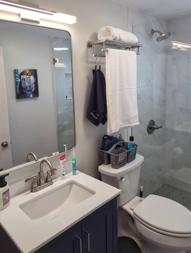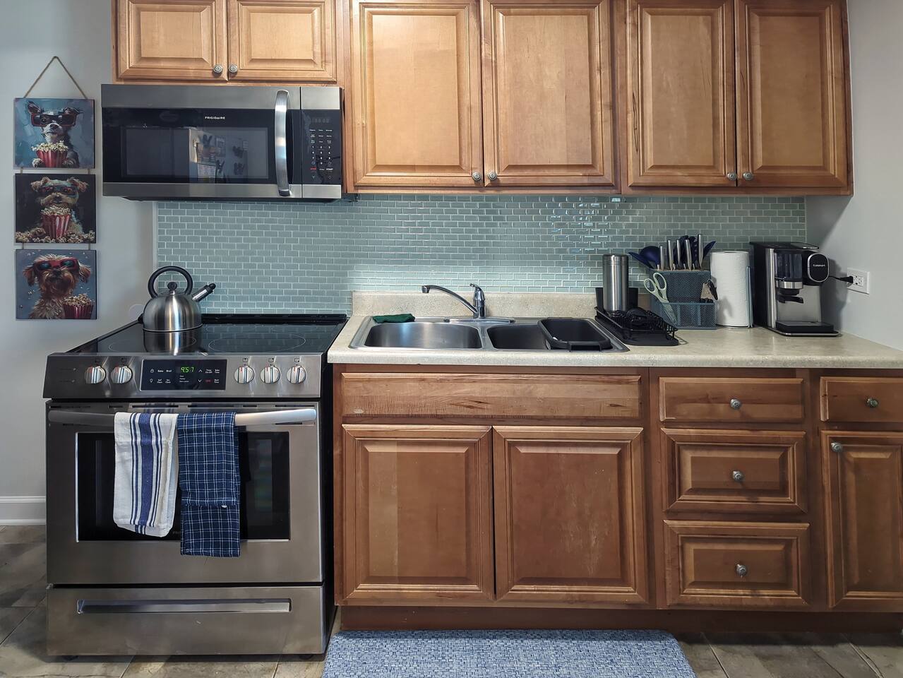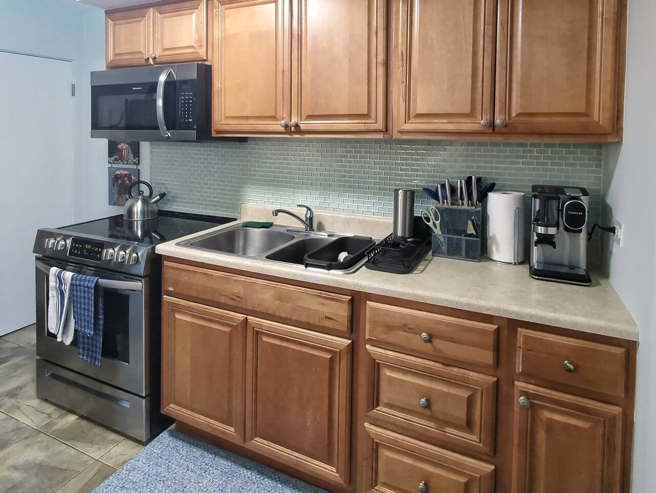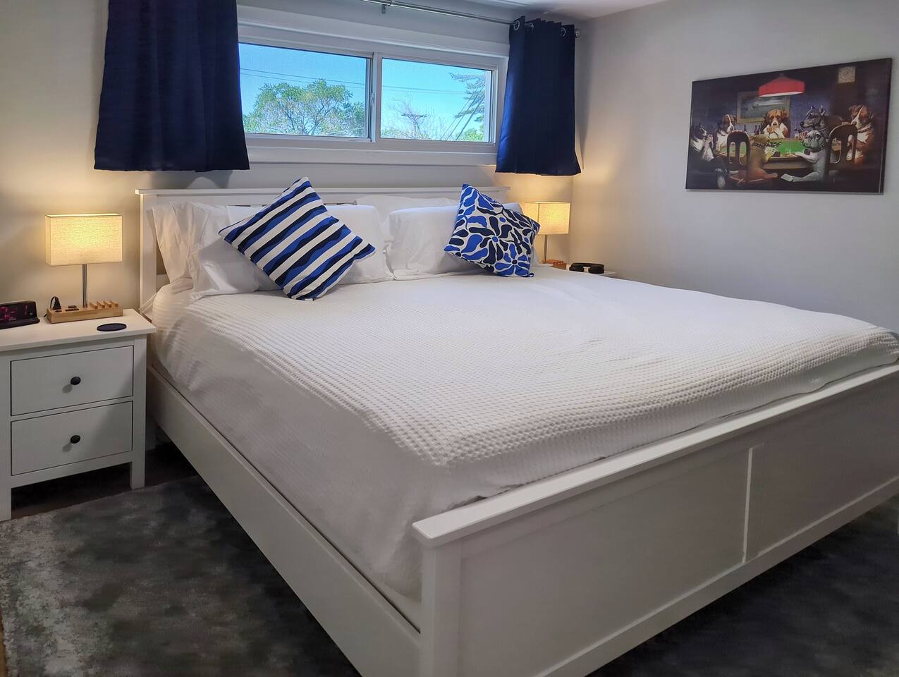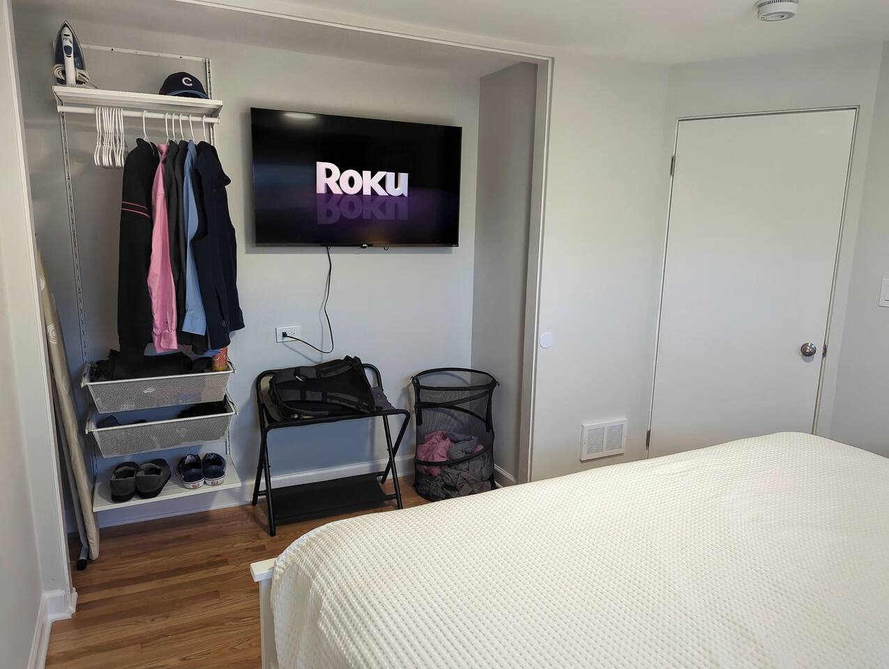 Step into a fully remodeled haven where everything is new—yes, even the light switches are living their best lives. This two-story charmer blends modern comfort with just the right dose of personality. Downstairs, you’ll find a bright, open-concept living room featuring a large Roku smart TV (bring your logins!), an electric fireplace, a dining area for four, and a well stocked kitchen. Coffee lovers rejoice: there’s a bean-grinding coffee machine ready to caffeinate your mornings, and tea drinkers, we see you too—there’s a selection waiting for you. Upstairs, two stylish bedrooms await. The master has a dedicated workspace, perfect for pretending to work while streaming your favorite shows on the smart TV (just saying). The second bedroom also boasts a large smart TV, because equal binge-watching rights for all. Both bedrooms feature soft and plush bamboo linens. The shared bathroom features a walk-in shower and has all soaps, lotion etc. you need. Central AC and heating keep things comfy no matter the season. Need entertainment? Bust out the board games and challenge your travel companions to an epic showdown (Monopoly friendships will be tested). One parking spot in the rear parking lot is all yours, and additional free street parking is available. Oh - and did we mention it’s dog-friendly? Your furry friend gets the VIP treatment too, complete with dog dishes, toys, and a doggy door that leads to a small fenced yard - perfect for sniff-inspecting the perimeter. And a word about the location: Just steps from your front door, you'll find a park, pool, tennis courts, and the Roos Recreation Center. Stroll just 5 minutes to the Harlem Blue Line Station and you’re in downtown Chicago (35 min) or at O'Hare airport (80 min) without having to switch to busses or other trains. For our four-legged friends several dog parks are just a tail-wag away. Whether you’re here for business, fun, or a bit of both, this location nails it.
