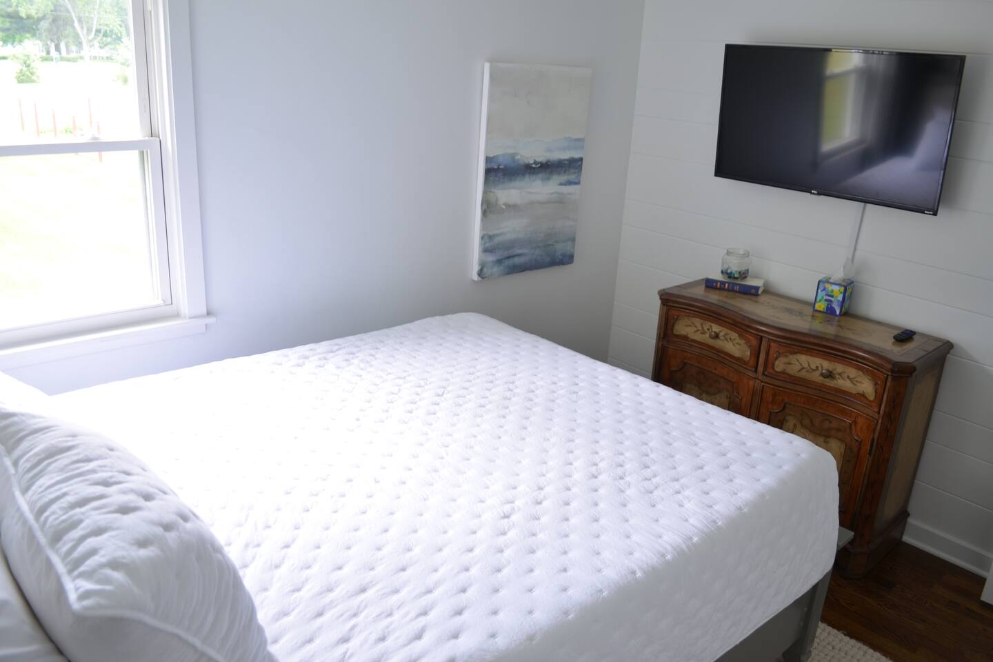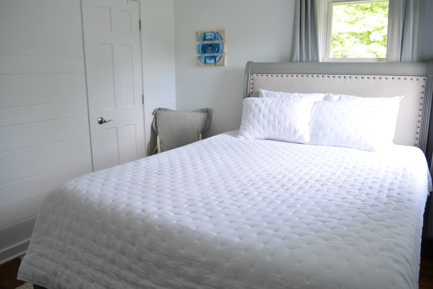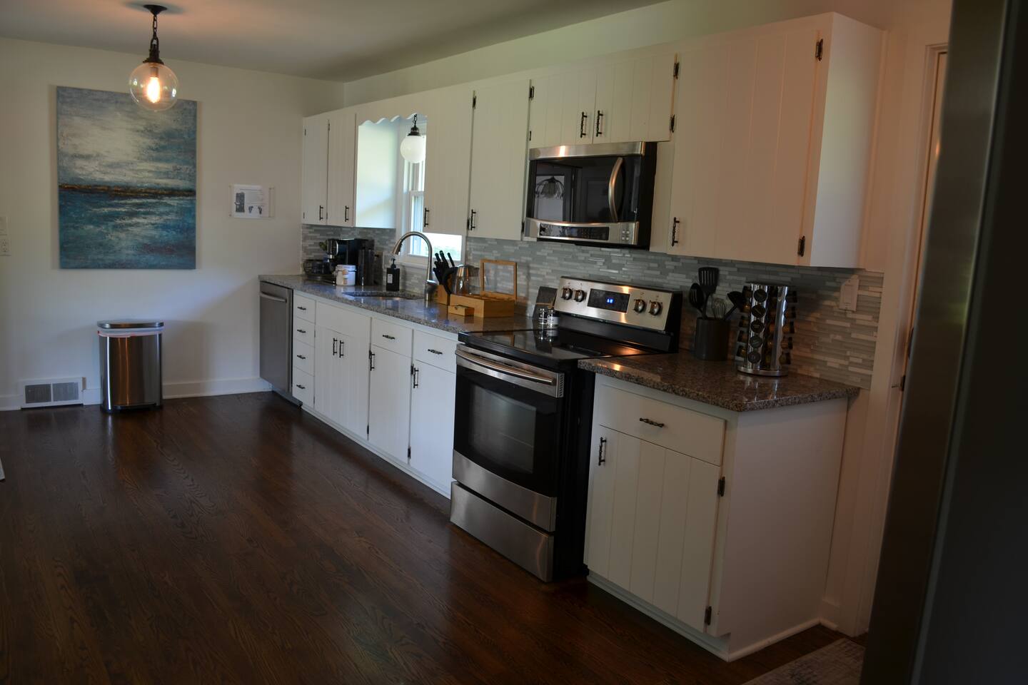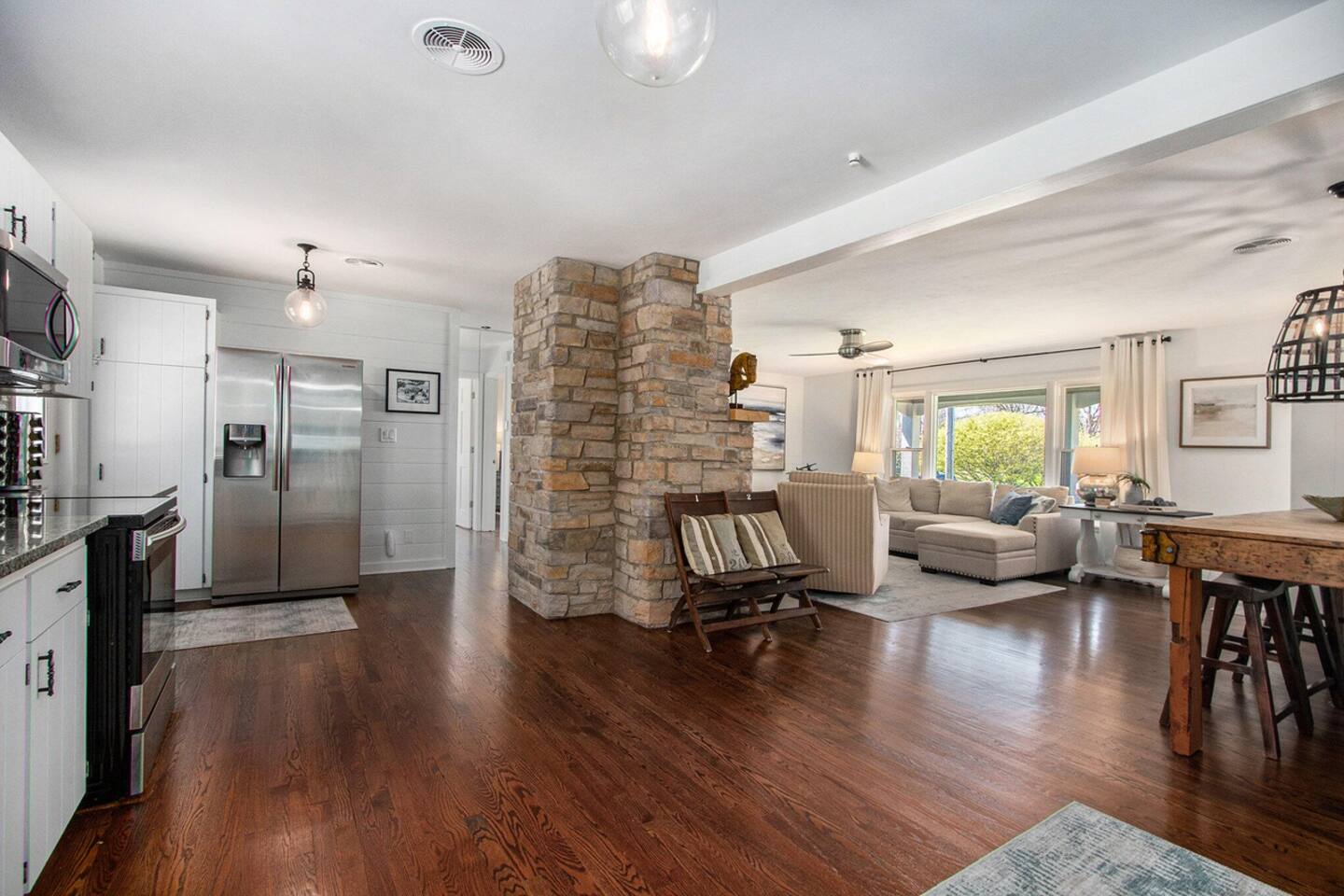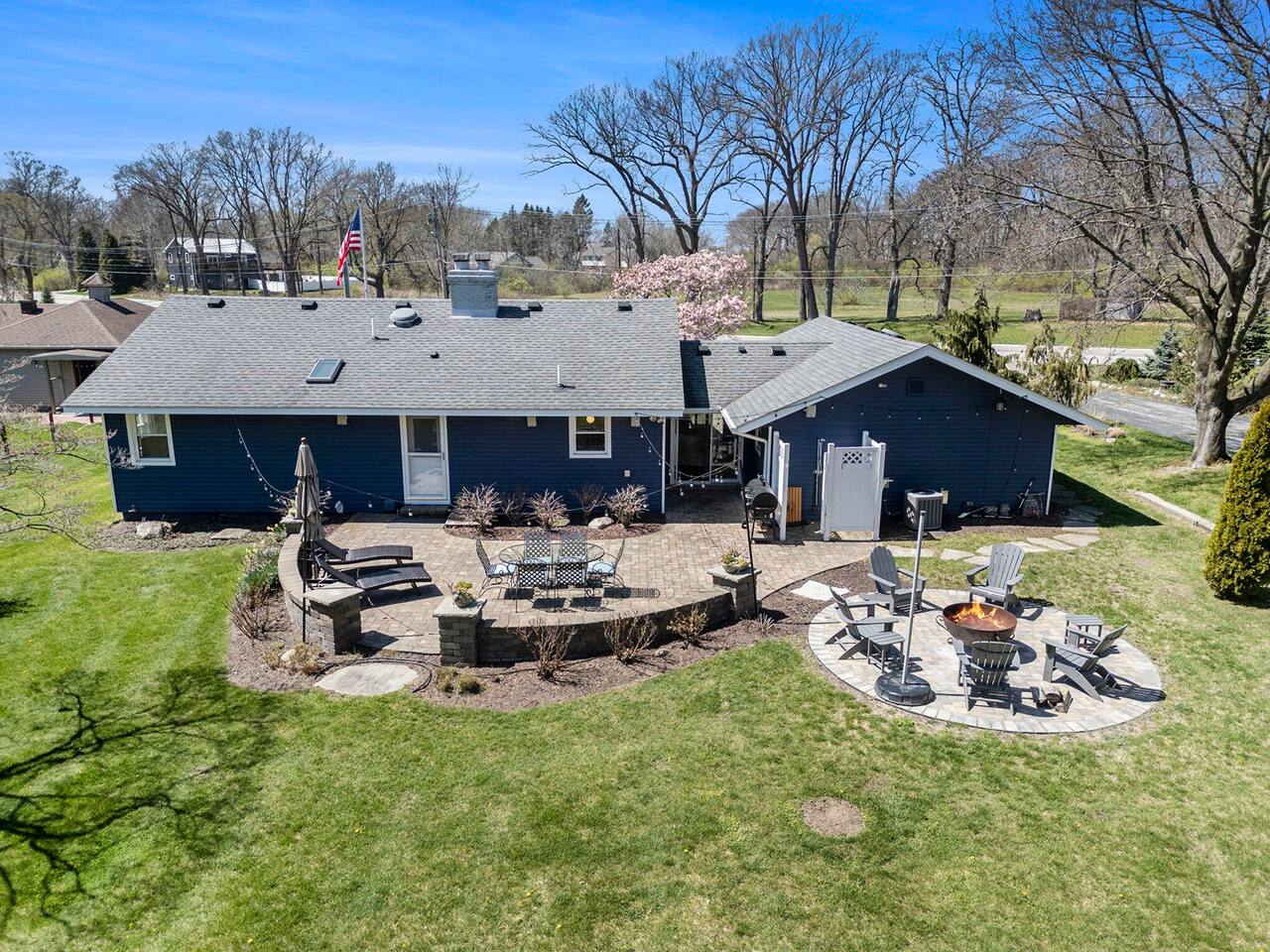 Make wonderful memories at Friday Fowls Cottage, a spotless and cozy cottage perfect for a family or group of friends. Located just minutes from Lake Michigan beaches, walking trails, bike paths, golf, and shopping, this amenity-packed home invites you to enjoy thoughtfully decorated rooms and gorgeous greenery outdoors. Highlights: 1 Min Drive to Rocky Gap Park and Beach 3 Min Drive to Jean Klock Park 5 Min Drive to Downtown St. Joseph (restaurants and shopping) 5 Min Drive to Wine Tasting Rooms 3 to 10 Min Drive to Several Golf Courses 20 Min Drive to Downtown South Haven BEDROOMS Hardwood floors are complemented by relaxing, neutral tones. The spacious master bedroom has a king bed, plenty of storage space, and a large TV. The second bedroom features a queen bed, closet space, and a smart TV as well. Both rooms are well-lit and equipped with premium linens, blankets, and pillows. Additionally the living room couch pulls out into a full size sleeper - see picture. BATHROOM The stylish bathroom features a skylight that allows plenty of natural light. Modern tiles and a spacious shower make for an enjoyable bathing experience. All the essentials are provided, including towels, shampoo, conditioner, body wash, and moisturizer. There is a full washer and dryer in the breezeway to take care of all your laundry needs during your stay. KITCHEN & LOUNGE On those nights you prefer to stay in, you can cook in the fully equipped kitchen which includes modern stainless steel appliances, a garbage disposal, and refrigerator with a filtered water dispenser. We provide all the essential cookware and silverware you need, as well as a whole-bean grinding coffee machine, a selection of premium teas, water kettle, toaster, and microwave. Enjoy a meal around the large 8-person dining table, or head outdoors to settle down and unwind on the backyard patio. A feature fireplace wall separates the kitchen from the living room. Kick back and relax on the comfortable sofa and chairs while enjoying your favorite entertainment on the 75” 4K TV. OUTSIDE SPACE Relax on the front porch with your morning coffee while you admire the flowers and greenery. You’ll have a huge private backyard area all to yourself, perfect for enjoying outdoor games and spending quality time with loved ones. The spacious patio has plenty of seating options for outdoor meals, which you can cook on the grill. Light up the fire pit as the sky darkens. Go and relax in the 4 person barrel sauna and a convenient outdoor shower is available for you after the schwitz or to rinse the sand off after a day at the beach. NEIGHBORHOOD There is plenty to do just minutes away from the cottage in our charming town. Enjoy the wine trail and beer tasting at the local micro-breweries, or go shopping for antiques downtown in St. Joe. If it’s the right season, a family outing to pick berries or peaches is a fantastic way to enjoy the sunshine. If that isn’t enough, you can enjoy the many beaches, bike paths, walking trails, and a game of golf nearby. If you forgot any beach essential, fear not. For your convenience, there are beach towels, folding chairs, and a cooler to take with you to the nearby beaches and parks. Book Now & Let Us Take Care Of You In Benton Harbor!