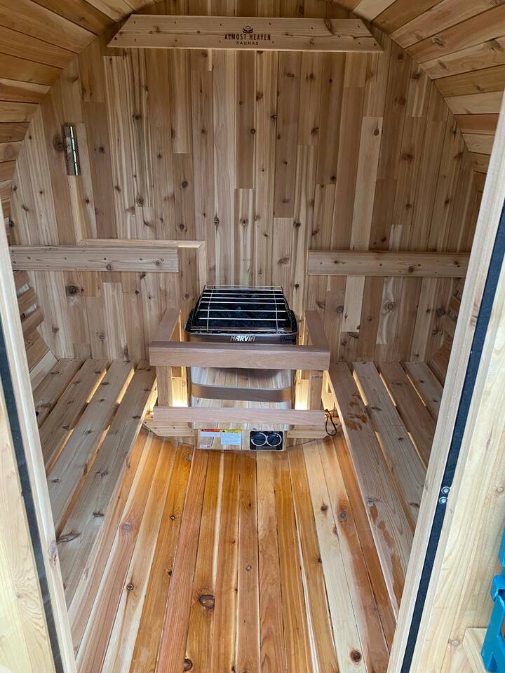 Escape to our charming beach cottage, a 1-minute drive from the Rocky Gap beach! Located near Benton Harbor, St. Joseph, and South Haven, this cozy retreat offers unique features like a barrel sauna, wood fired barrel hot tub, outdoor shower, yard games and indoor fireplace. Enjoy the large patio with a fire pit, BBQ, and outdoor dining area. With 2 bedrooms and a fully equipped kitchen, it's perfect for families and friends. Relax with modern amenities, including fast Wi-Fi and smart TVs.