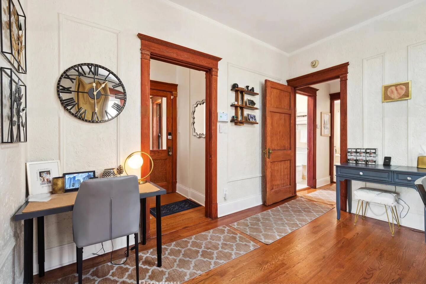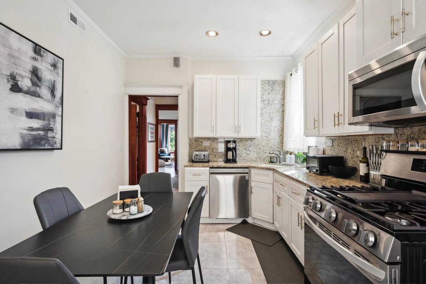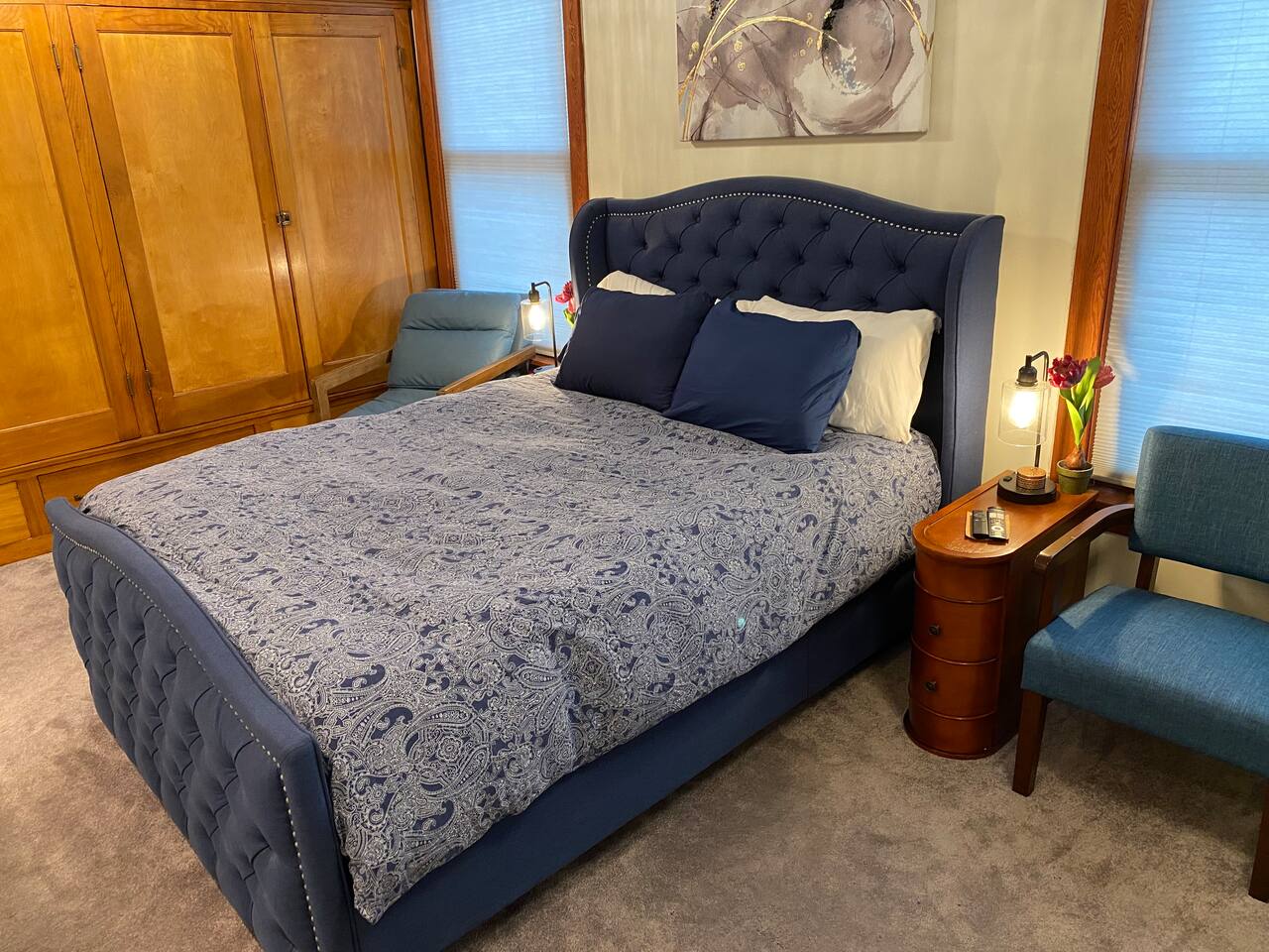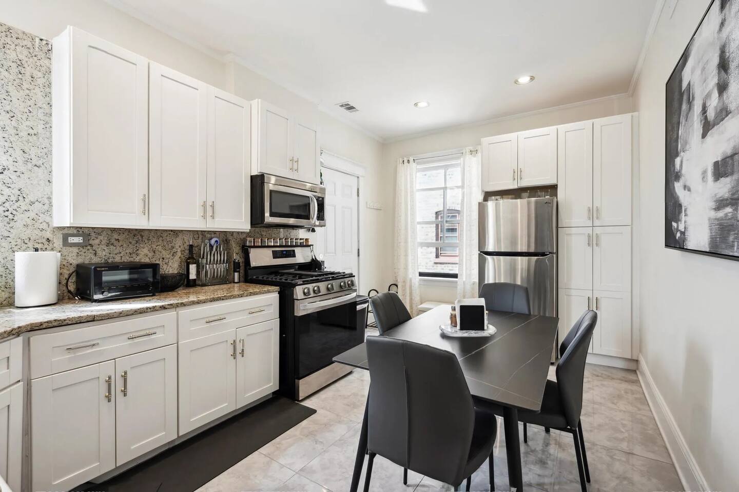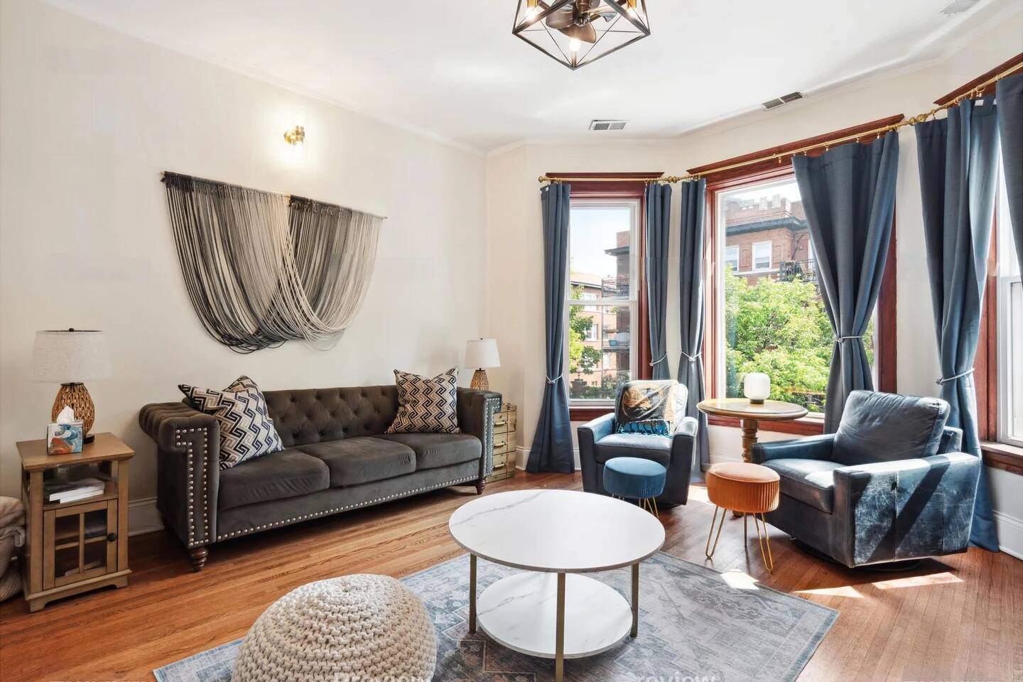 Discover the perfect blend of city excitement and neighborhood charm in this spacious 2-bedroom, 1-bath condo located in the heart of Chicago’s Uptown/Buena Park area. Just minutes from the lively neighborhoods of Wrigleyville, Boystown, Lakeview, and Uptown, this inviting retreat offers easy access to everything Chicago has to offer, whether you’re here to explore, work, or relax. Inside, the condo boasts approximately 1,200 square feet of thoughtfully designed living space on the second floor of a two-unit building. Each bedroom features a smart TV for private entertainment, and the living room is equally equipped for cozy movie nights or catching up on your favorite shows. The fully stocked kitchen is complete with all the culinary essentials, and the dining room offers additional seating for group meals or gatherings. The sleeping arrangements are as versatile as they are comfortable. One bedroom features a plush queen-sized bed, while the second bedroom includes a twin-sized daybed that easily converts into a king for added flexibility. A fold-out mattress is also available for use in the living room, accommodating up to six guests. It is stored in the master bedroom closet and easily unfolded in a matter of seconds. For added convenience, the condo includes an in-unit washer and dryer, a makeup vanity with a lighted mirror, and two separate dedicated workspaces equipped with surge protectors and wireless chargers—perfect for remote work or planning your next adventure. Getting around is a breeze! The condo is just a 7-minute walk to the Red Line “L” station, which will take you to downtown Chicago in 20 minutes. Prefer to drive? Downtown is just 12 minutes away by car. For a more scenic option, hop on a bicycle and cruise the stunning lakefront trail to reach downtown in about 35 minutes. Wrigley Field, home of the Chicago Cubs and a venue for world-class concerts, is only a 15-minute walk away, making this an ideal spot for sports and music fans alike. When it’s time to unwind, enjoy the peaceful Buena Park neighborhood, known for its tree-lined streets, charming architecture, and local gems. Step out to explore nearby bars, restaurants, and shopping options, or take advantage of the free off-street parking (including EV charging access upon request) and venture further afield. With its unbeatable location, modern amenities, and cozy yet spacious design, this condo is the perfect home base for your Chicago getaway. Whether you’re here to cheer on the Cubs, soak up the city’s culture, or simply relax in comfort, you’ll find everything you need right here.